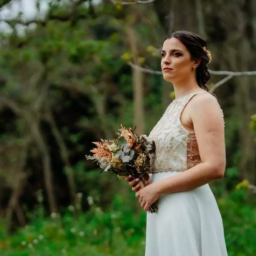 Las flores que usamos son preservadas y secas. La gran ventaja de este tipo de accesorio es que dura toda la vida si se lo cuida bien. En el caso de novias son ideales ya que se pueden tener con anticipación y llevarlos a las pruebas de vestido, peinado y maquillaje.