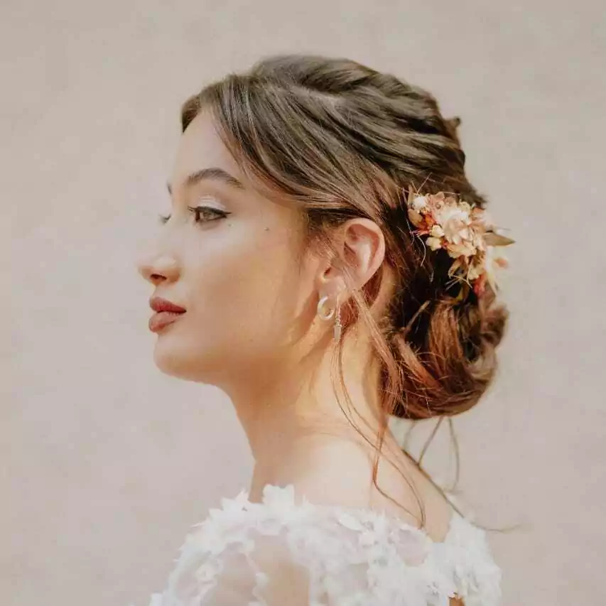 2 tocados laterales de flores naturales preservadas y secas. Ideal para novias, primeras comuniones, cortejos, cumpleaños, fiestas de 15 y cualquier ocasión especial.